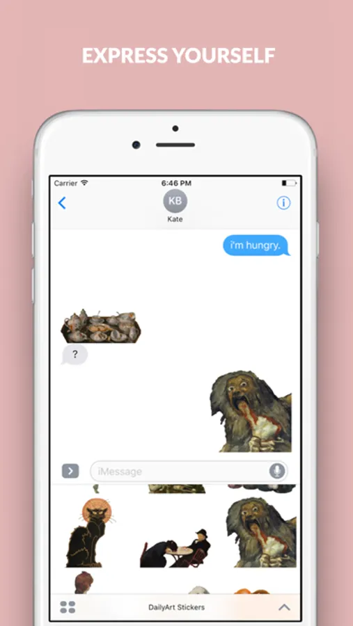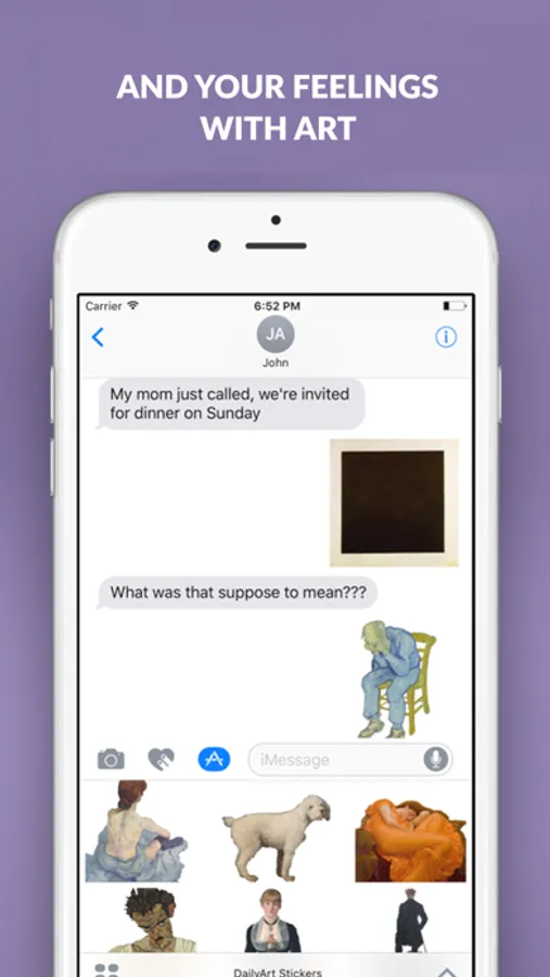 Includes famous artists, classic masterpieces, food, booze, animals and flowers. Communicate with 24 art history classics :)
