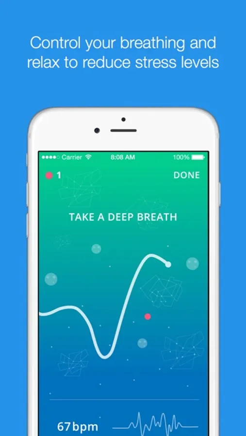 - Place your fingertip over the camera lens, start by taking a deep breath and hit the right points to lower your stress levels. Get feedback in real-time and see how your stress level lowers.