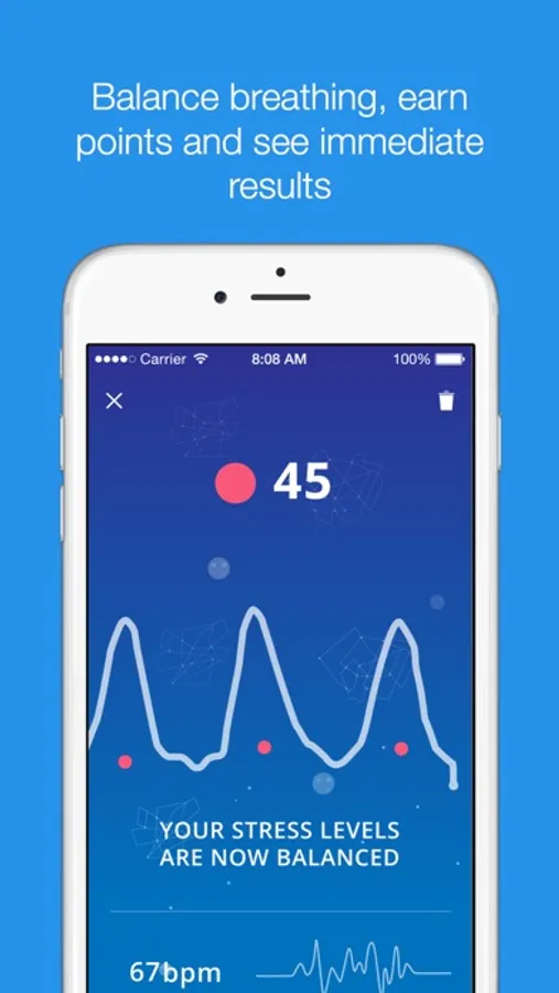 - Control your breathing levels and score points through the process. Collect points and track your stress history, and control how you are reducing stress levels on your body.