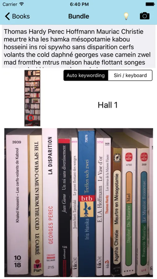 Once and for all take photos of your books by bundles and keyword them (titles, authors) using: