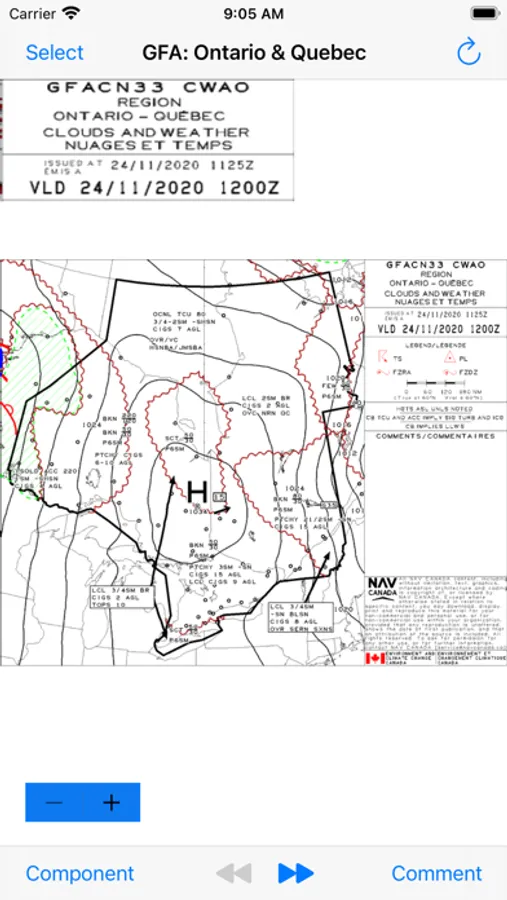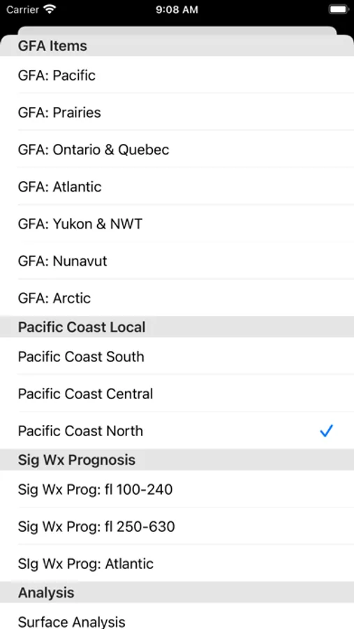 AeroGFA provides quick access to the Nav Canada GFA weather forecast data for Canadian pilots. No need to step through all the web links to get the area forecast you are looking for.