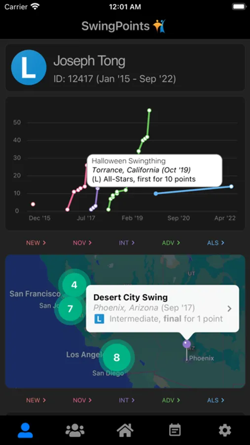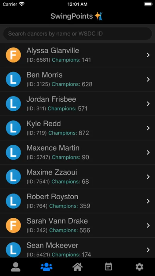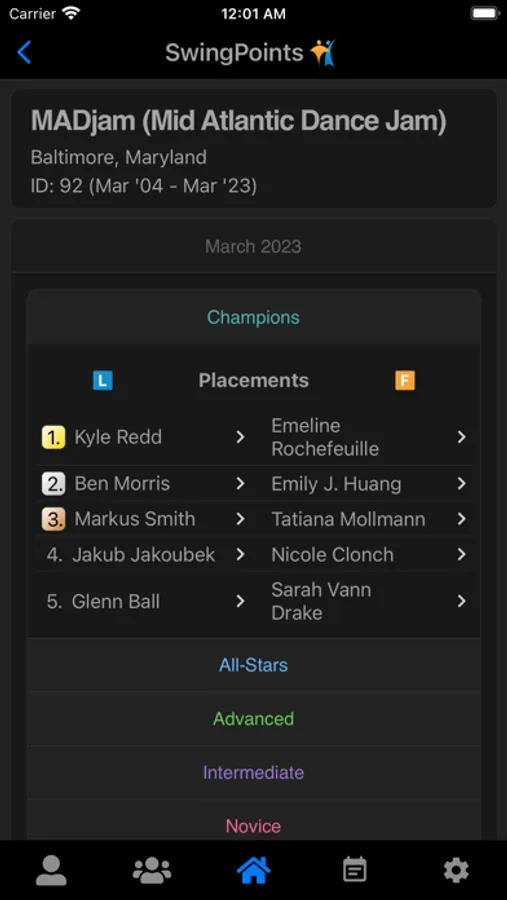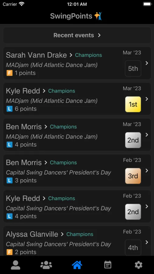 SwingPoints allows you to stay up to date with your and your friends' WSDC competitive dance history.