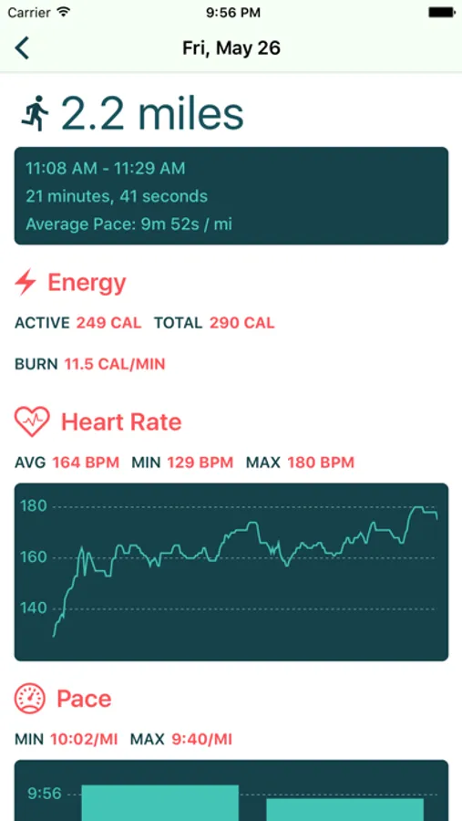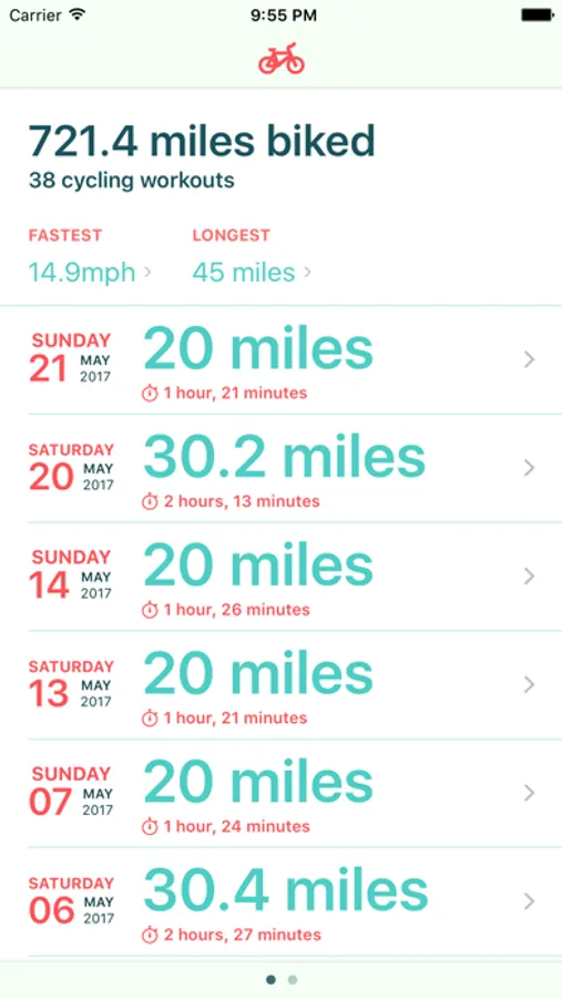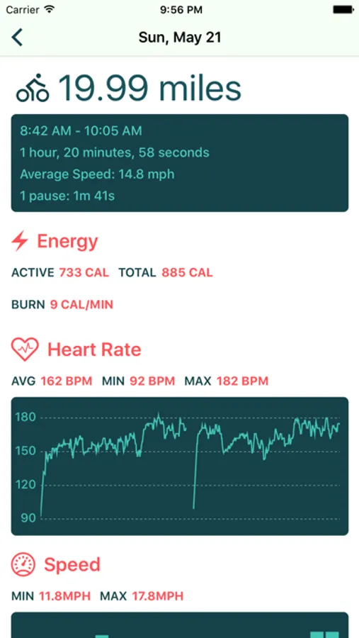 View all your cycling and running workouts recorded from any app that writes to HealthKit. View stats for your rides, including your full heart rate graph, if available, and a chart of your speed throughout the workout.