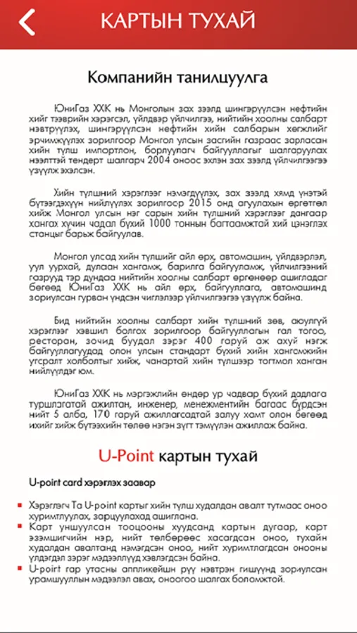 Монгол улсад хийн түлшийг айл өрх, автомашин, үйлдвэрлэл, уул уурхай, дулаан хангамж, барилга байгууламж, үйлчилгээний газрууд тэр дундаа нийтийн хоолны салбарт өргөнөөр ашигладаг бөгөөд ЮниГаз ХХК нь айл өрх, байгууллага, автомашинд зориулсан гурван үндсэн чиглэлээр үйлчилгээгээ үзүүлж байна.