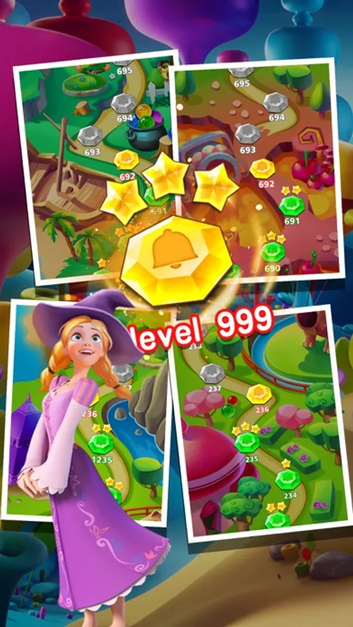 ●Shoot bubble to clear the same color bubbles to complete the puzzle level.