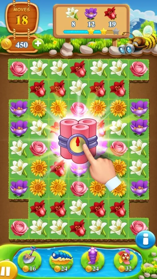 ● Create Crazy BOMBS by matching four or more flowers and blast the Garden!