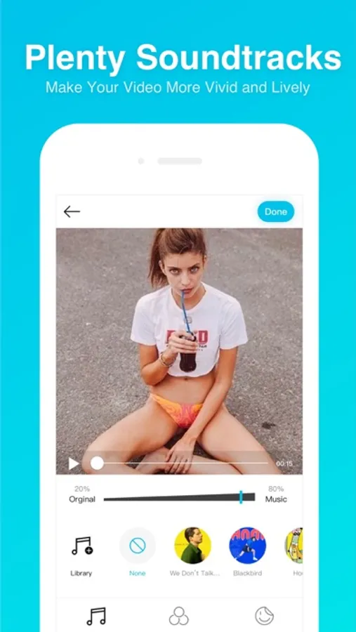With Vooha, all it takes is a few taps to create awesome videos. Just choose your favorite video clips from your local Library, —then let Vooha work its magic.
