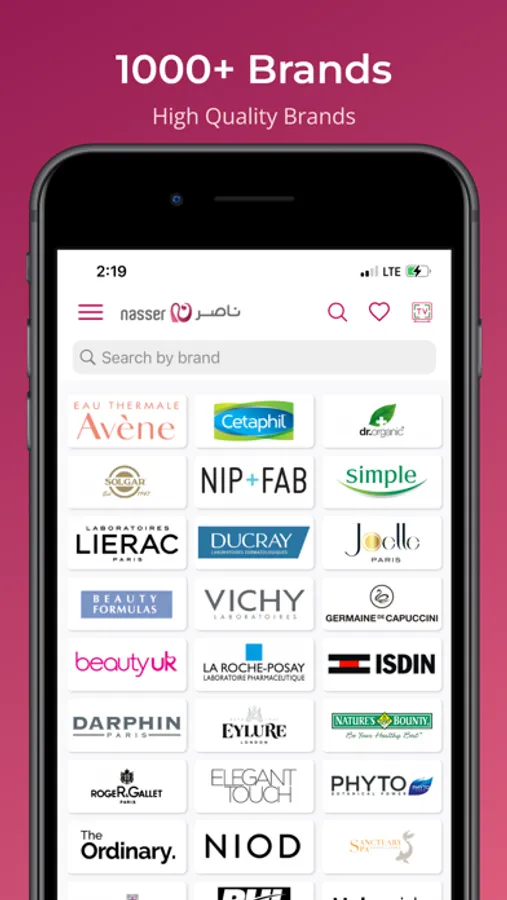البحث المتقدم باستخدم النصوص والأوامر الصوتية وبمسح الباركود , ايضا يمكنك البحث بالماركة أو إسم المنتج او الكود.