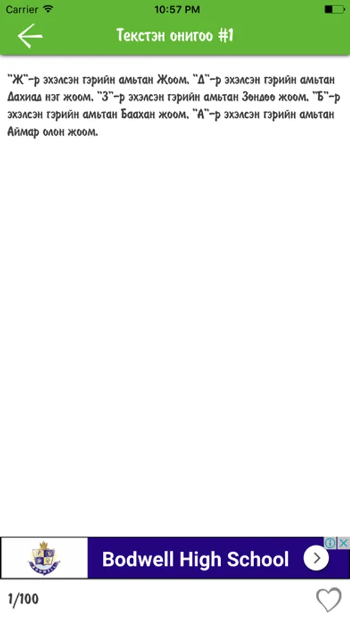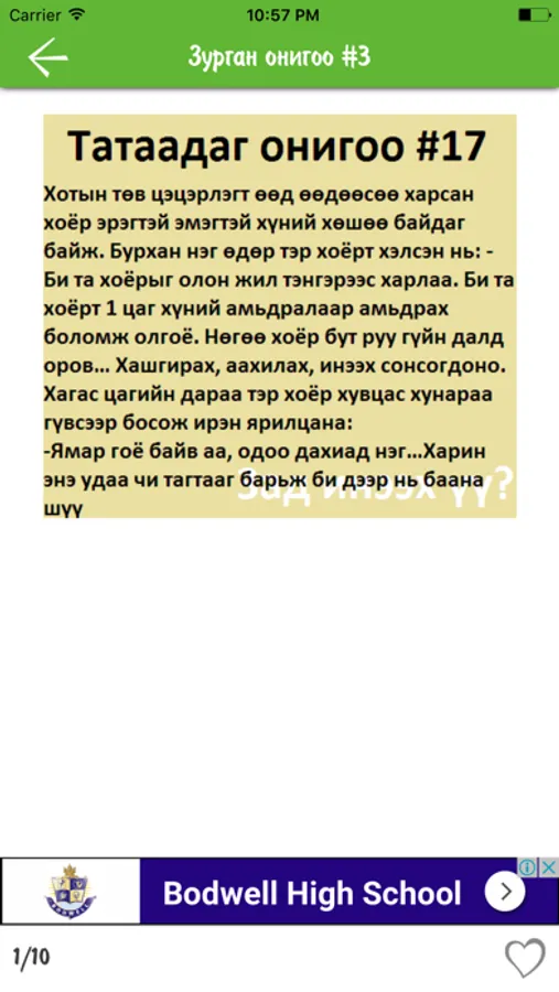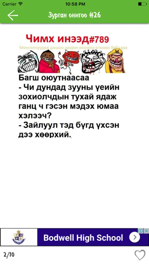 Нийт 4400 гаруй текстэн онигоо болон 400 гаруй зурган онигоо багтсан байгаа. Цаашид 10000 онигоотой болох зорилготой.