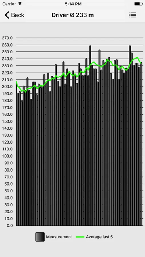 With this app, you get the opportunity to determine your hit-distances in only one to two steps. The history accurately shows your development over time.