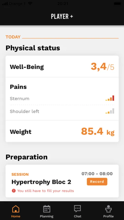 Dynamically linked to Rugbycentric Coach+, it enables players to receive training, match, schedule and medical data directly on to their mobile phones. In return, players share their wellness, training, injury and fitness data with the staff.
