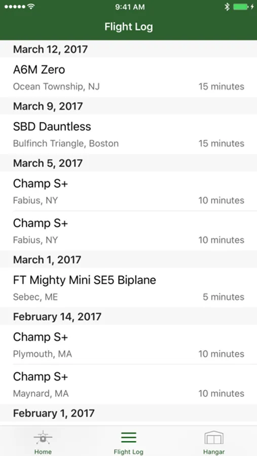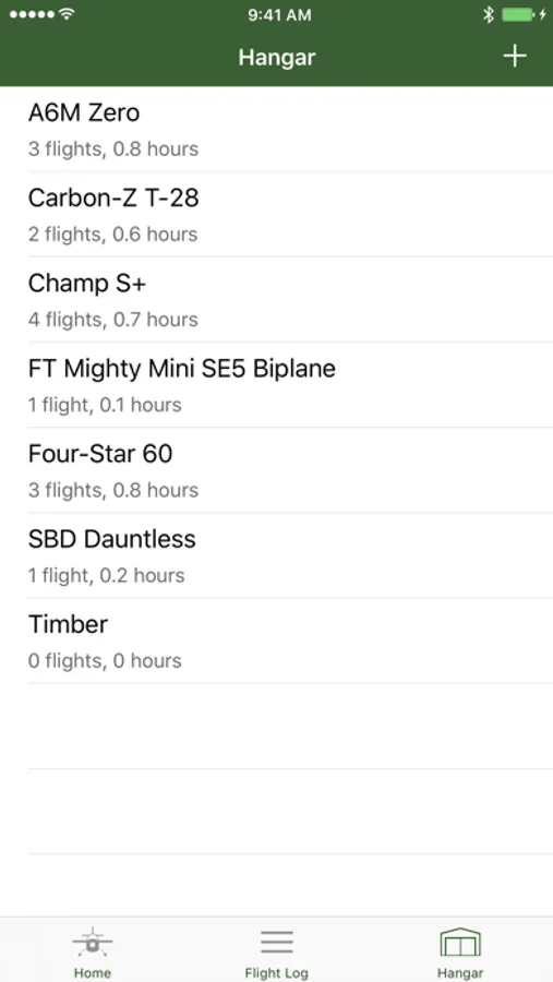 The Hangar lists all of your aircraft and the number of flights you've made on each one.