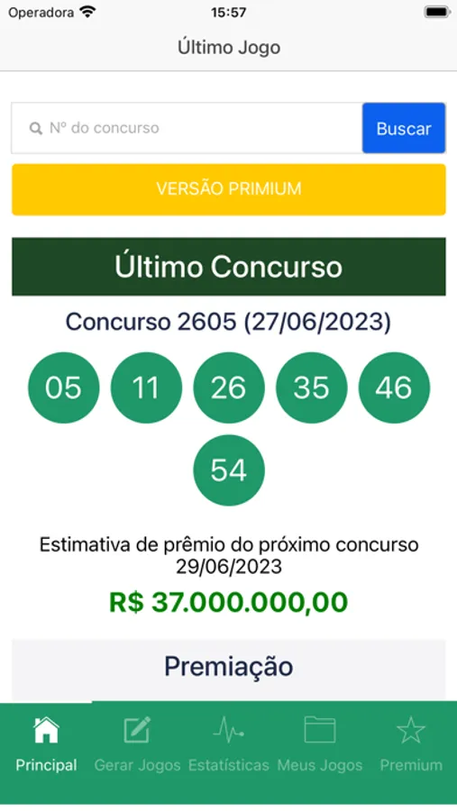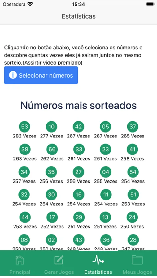 O mesmo também mostra as estatísticas dos números mais sorteados.