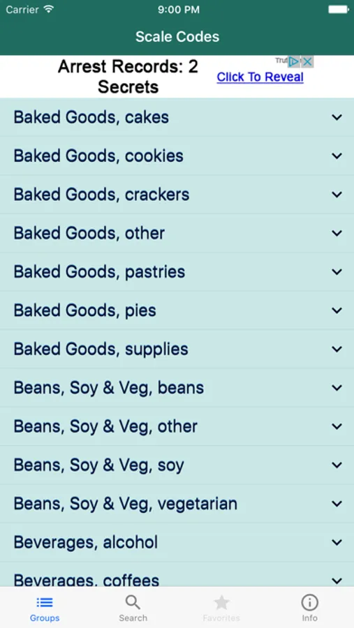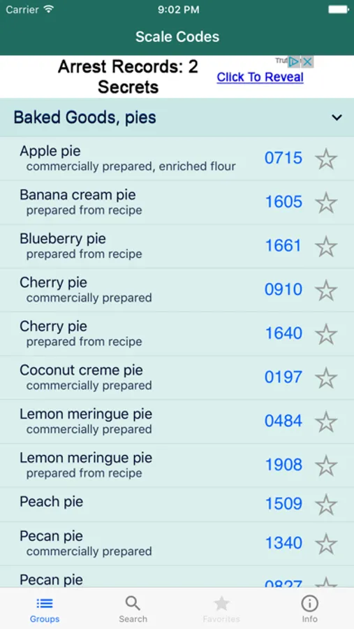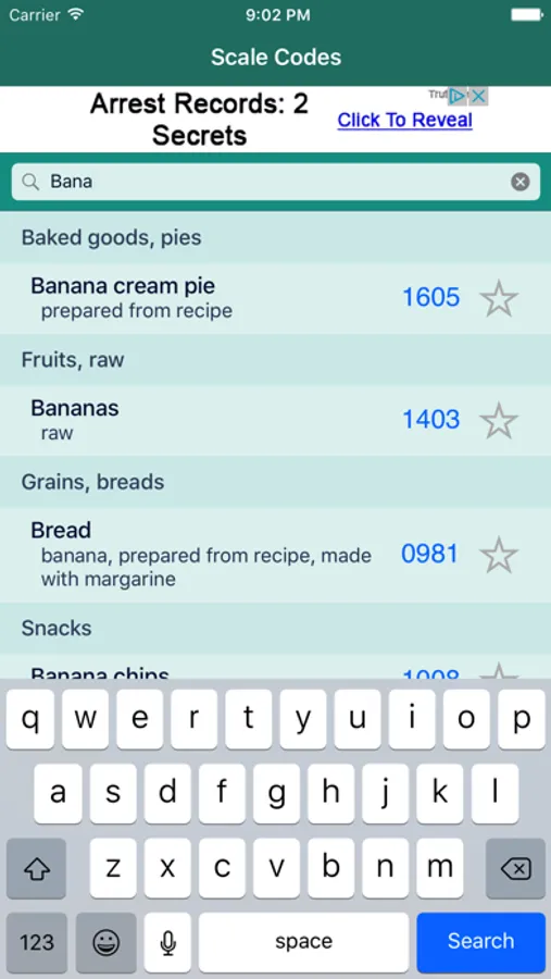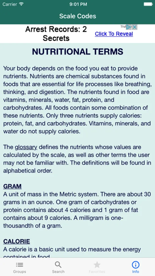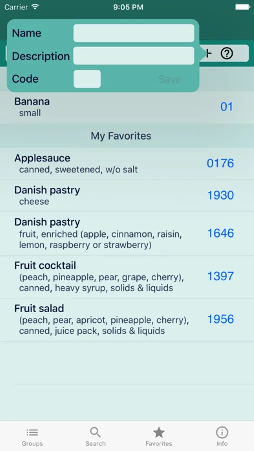 The app is used primarily as a reference to find food and drink codes and allows you to search food by keywords.