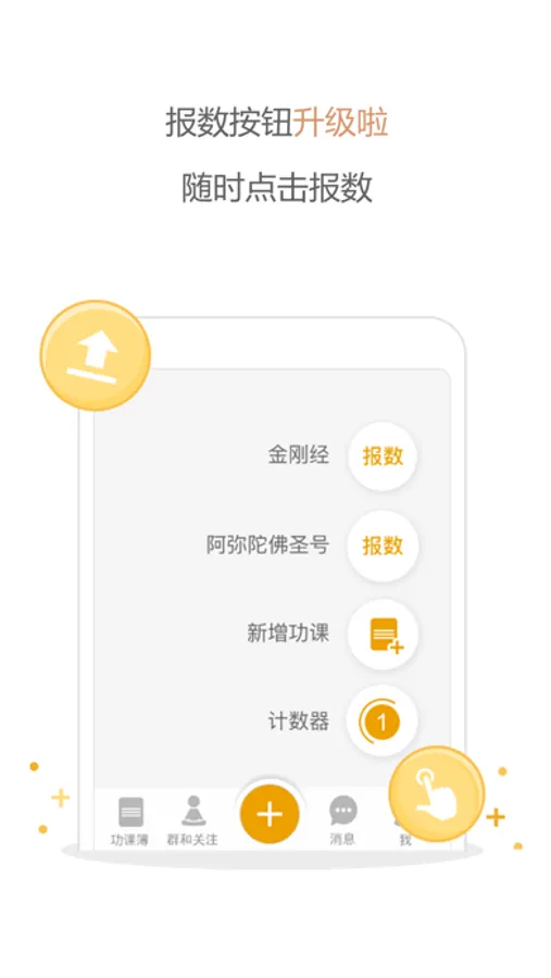 方便日常功课管理,软件具有功课管理、提醒回向、屏幕计数、群组共修等功能。
