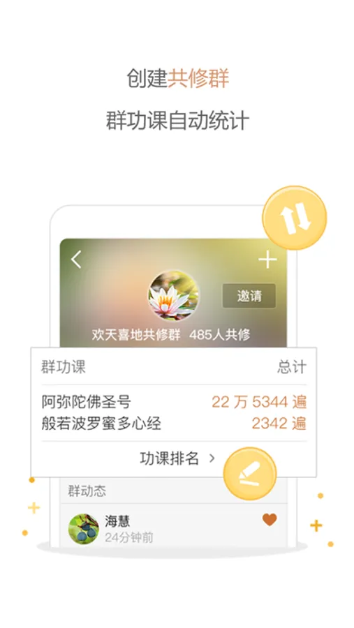 - 与共修群师兄一同修行 自动统计佛经念诵总数和排名