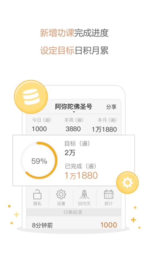 - 也可自定义功课 念佛经 持咒 拜佛 抄经 各类功课都可方便记录
