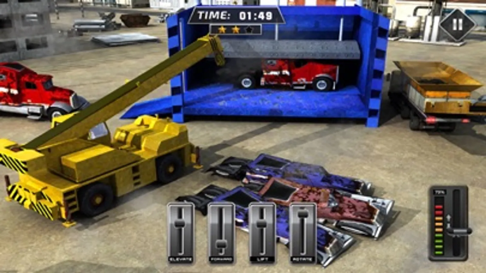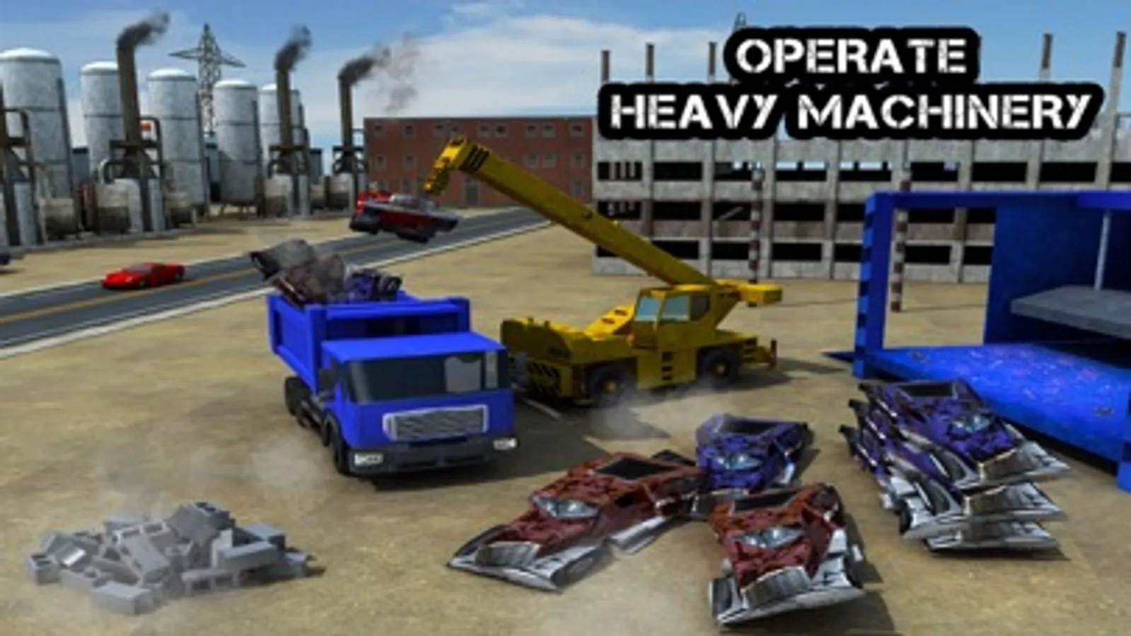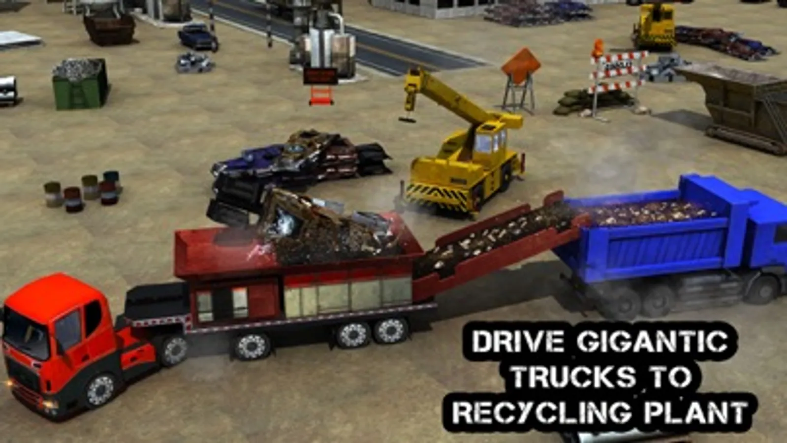 Ever dreamt of operating extreme shredder machine for compression and demolition of monster trucks? The process of operating gigantic cranes and transforming scrap metal for recycling purposes is quite fun. So roll up sleeves and start working at junkyard to do exciting builder job. Get behind the wheels of massive crusher crane and a gigantic compactor to demolish old trucks. Drive wrecked truck over countryside roads and park near compressor crane. Operate magnetic compressor to press and compress broken truck. Then operate lifter crane to lift old trucks and drop them in shredder. Turn on crusher machine and demolish rusty trucks into scrap bits. Collect truck destruction garbage in dumper truck and transport junk to recycling plant. Operate garbage truck to transport shredded scrap into a dump site. Have fun while driving trailer truck and explore construction site junkyard of massive city.