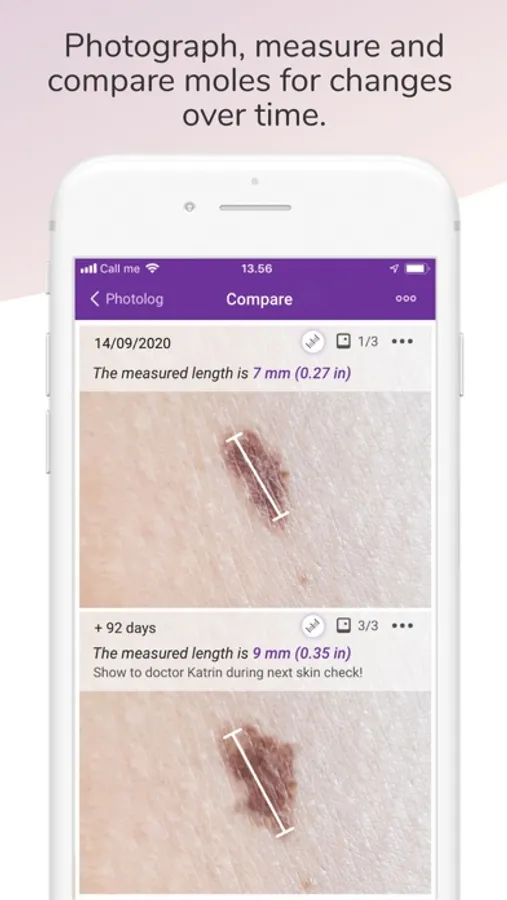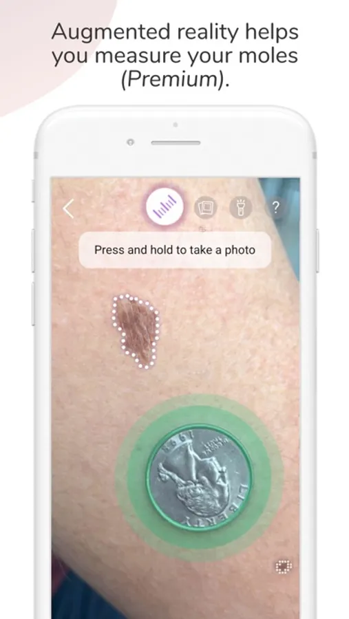 * MOLE SIZING helps you measure your moles and lesions over time. Simply add a coin into your close-up photos.