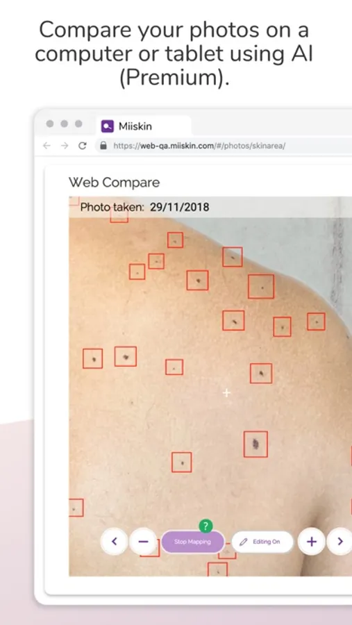 * WEB COMPARE allows you to access your Miiskin App photos in the browser on any tablet or computer with a SIDE-BY-SIDE VIEW. Very useful for you to compare your full-body images for any changes on a larger screen.
