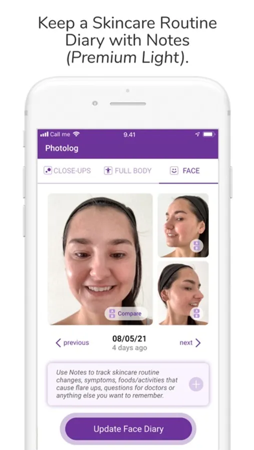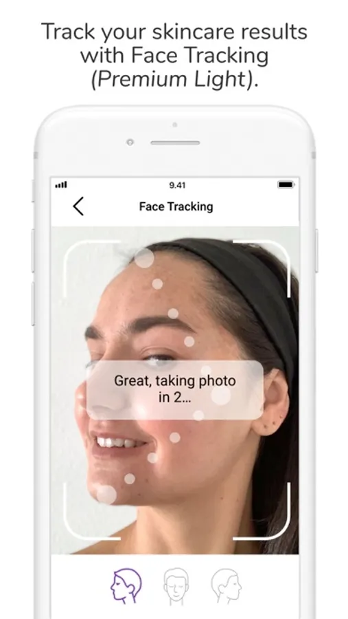 * FACE TRACKING lets you take selfies from multiple-angles in seconds to track e.g. acne or skincare results