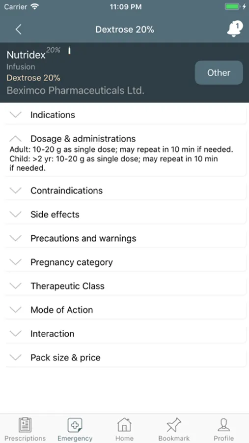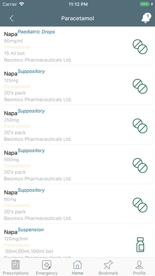 3. View option of different Brands of the generic name and the details of drugs in the treatment section
