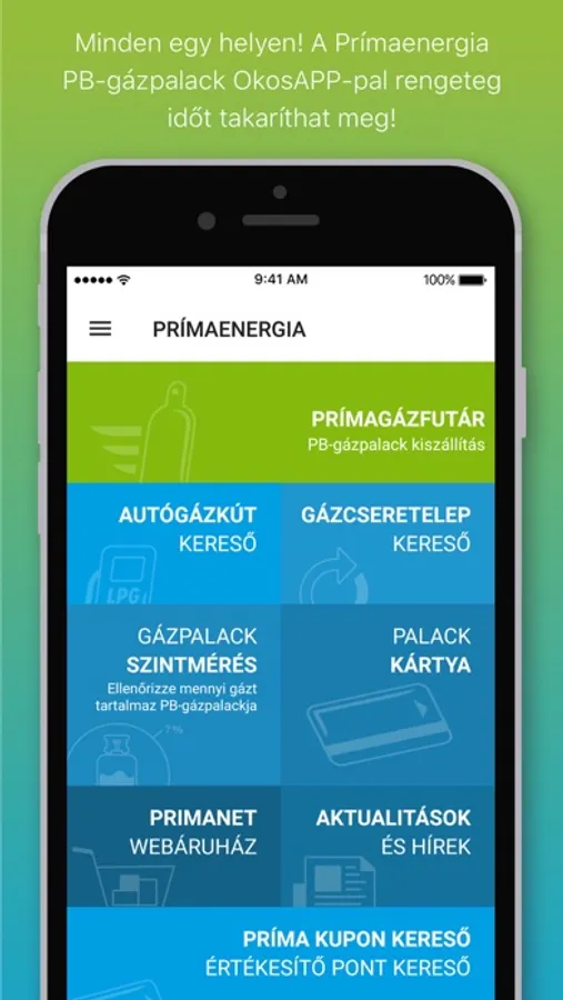A Prímaenergia Zrt. ügyfeleinek még könnyebb az ügyintézés! Az alkalmazás segítségével az adminisztráció is egyszerűsödik: naprakész információkat tartalmaz a Palackkártyáról, és egyenleg-lekérdezés funkcióval is rendelkezik.