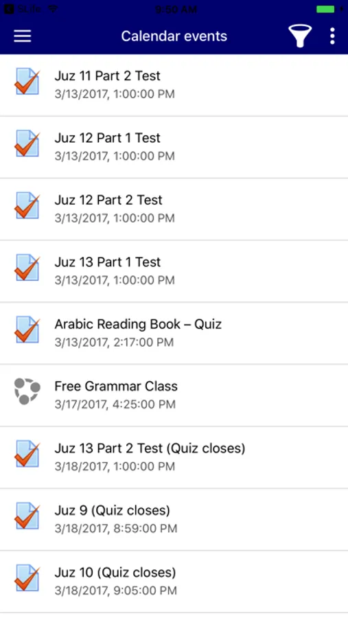 Site, course and user events can be viewed in the calendar.Calendar events can now be viewed offline and infinite scrolling is available.
