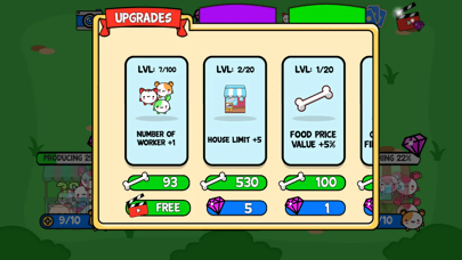 • EXPLORE 7 UPGRADEABLE HOUSES! Upgrade your minions, houses and food.
