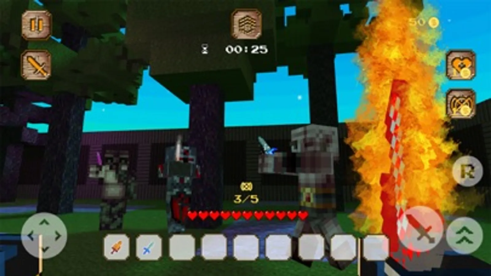 Elemental Sword Fight is a fight with magical blades, where contact is not needed. Throw your spells upon your enemies and bring the danger of the nature elements straight to them! Some effects can be deadly and you are the warrior with a special gear that can survive this and save the pixel kingdom from the demise.