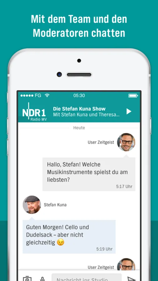 - Messenger: Mit dem Messenger direkt ins Studio von NDR 1 Radio MV: chatten, Staus und Blitzer melden!