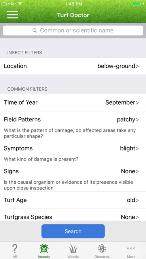 The Purdue Turf Doctor app was developed by experts at Purdue University to help homeowners and land managers diagnose and address turfgrass problems caused by a variety of factors including weeds, insects, diseases, nuisance animals and abiotic stress. Turfgrass management professionals and garden center personnel can also use this app to improve communication with their customers. Information in this app is most useful in the Midwestern and Eastern United States, but may also be useful for diagnosing and managing turfgrass disorders in other regions of North America.