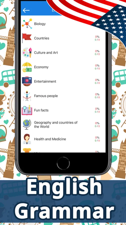 You can use our application with any level of English - even beginners can use our application and find a lot of knowledge here.