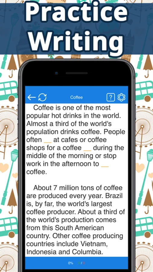 After choosing the verbs, you must choose what you want to read - texts or books. Our texts are divided into many categories, so you can find topics that interest you and only read what you like. You will see the same thing in the section with books. There you will find books for every taste and genre. The algorithm of our application will cut out the necessary verbs from the texts or books that you have selected. You must correctly insert the missing options, focusing on the proposed options.