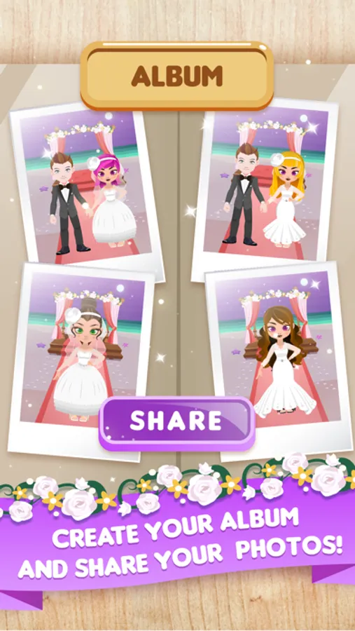 Customize the perfect wedding dress and choose a breathtaking hairstyle for the big day! Don’t forget to take photos to remember yourself as a stunning bride!