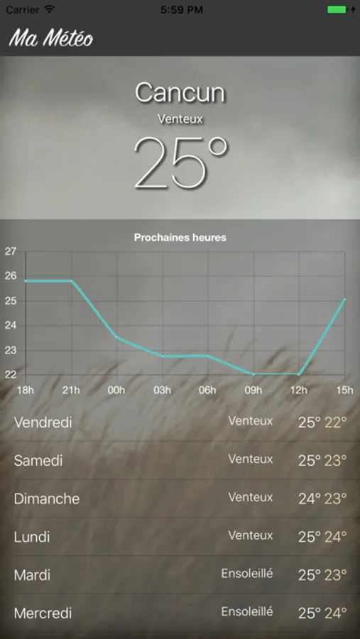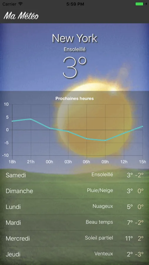 Découvrez la courbe de température qui vous informe de l'évolution de celle ci par période de 3 heures.
