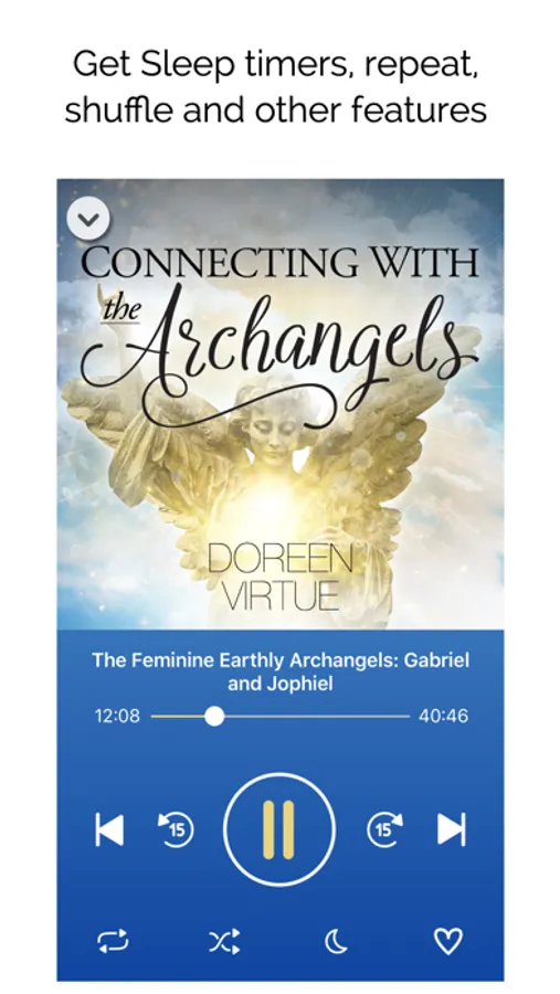 The Connecting With the Archangels app features 7 audio tracks, each devoted to two or more archangels. Every audio includes a description of the background of each archangel, and then a guided meditation to connect with their energy and presence.