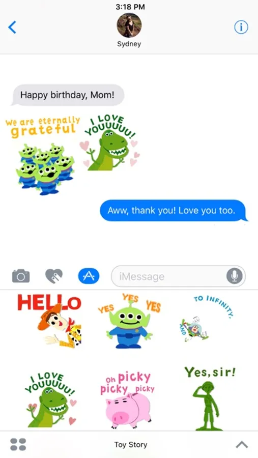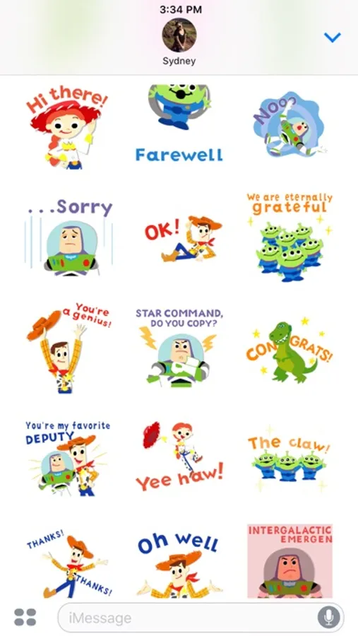 Take your messages to infinity and beyond with this new Toy Story stickers pack! It includes beloved characters like Buzz Lightyear, brave commander; Woody, your favorite deputy; some eternally grateful aliens—and more!