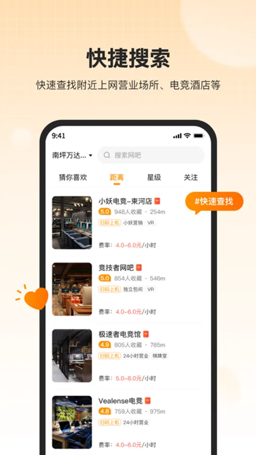 【快捷搜索】快速定位附近上网营业场所、电竞酒店,一键导航