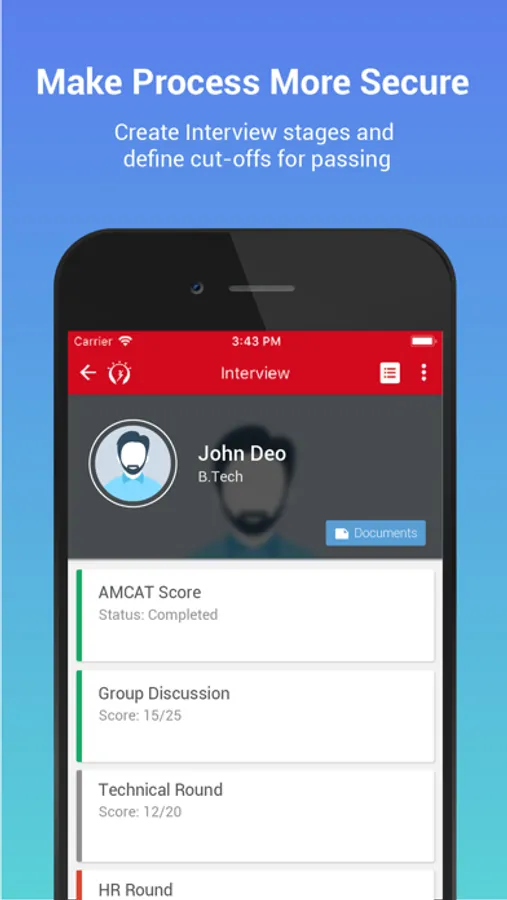 - Make the process more secure: Maintains stage wise status for each candidate accessible at all times.