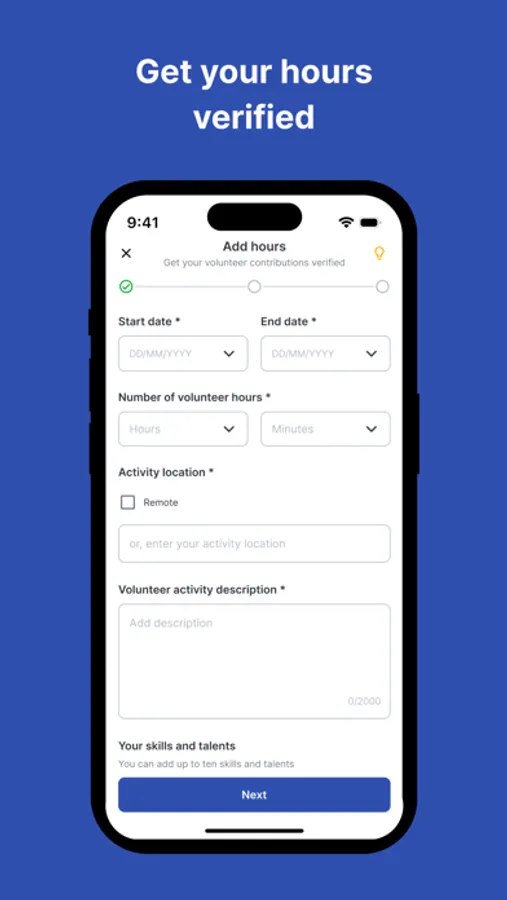 Record your service hours with just a few clicks - organizations receive automatic notifications to verify your contributions