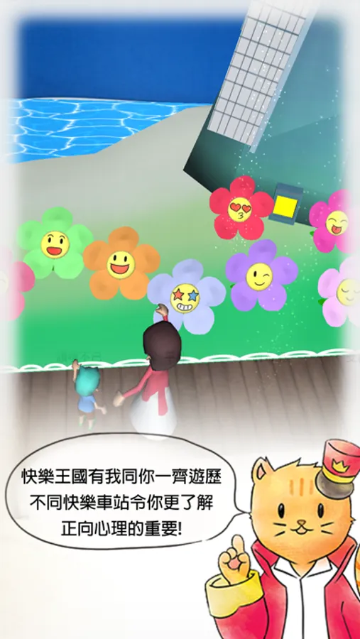 (AR - 增強現實內容需配合「快樂王國」正向心理學工具書使用。)