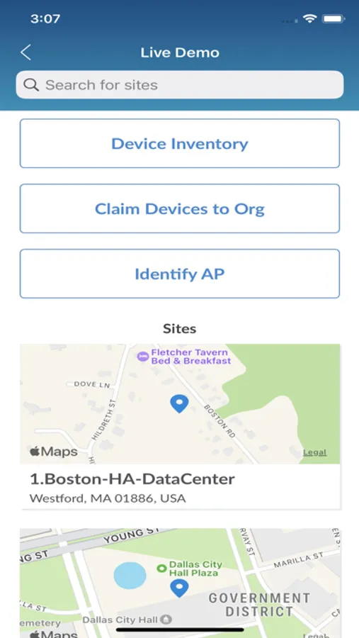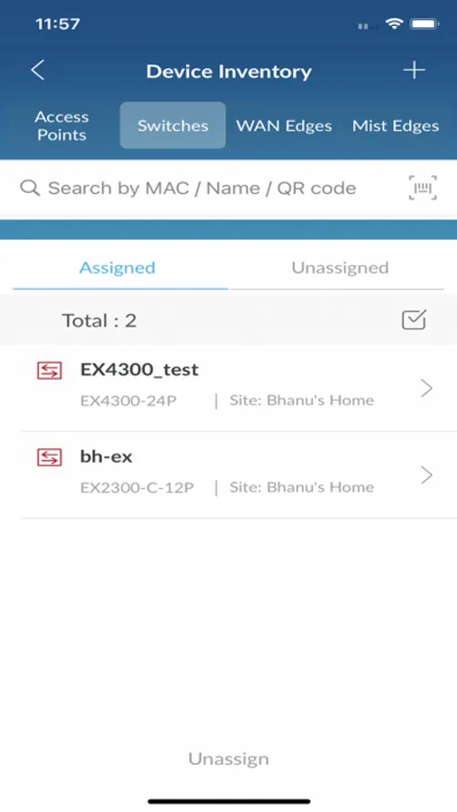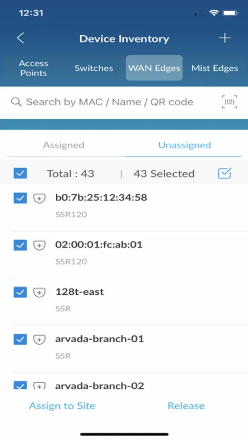 • Fast and easy way to search devices by name, mac, or scanning a QR at the Site level.