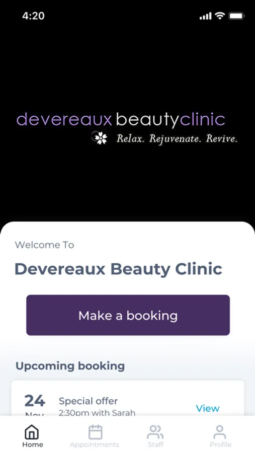 The Devereaux Beauty Clinic app makes booking your appointments and managing your loyalty points even easier. You're just a few taps away from feeling good and looking great!