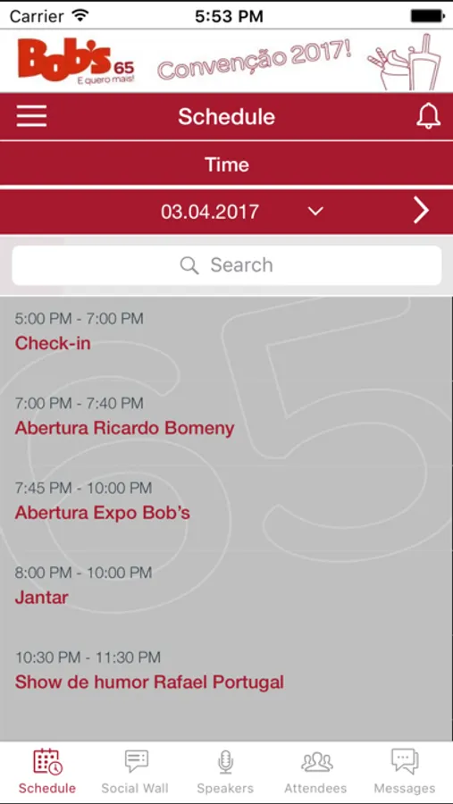 Convenção Bob’s 65 E quero Mais! Um evento inesquecível que reune franqueados, fornecedores, parceiros e a equipe Bob’s no hotel Club Med Rio das Pedras, de 3 a 6 de abril de 2017. Palestras, novidades, lançamento de produtos, networking, festas, muita informação e diversão.