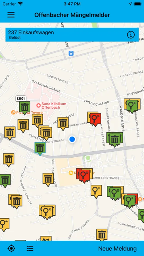 Besser leben in Offenbach – Machen Sie mit! Die Stadt Offenbach sorgt für ein intaktes Umfeld und damit für sichtbar mehr Lebensqualität. Wir möchten, dass Sie sich in Ihrer Stadt wohlfühlen. Auch Sie können dazu beitragen. Melden Sie uns, was Sie stört: Sei es ein wilder Sperrmüllhaufen, ein defektes Spielgerät auf einem städtischen Spielplatz, Löcher im Straßenbelag oder ein abgebrochener Bordstein. Wir schaffen Abhilfe.