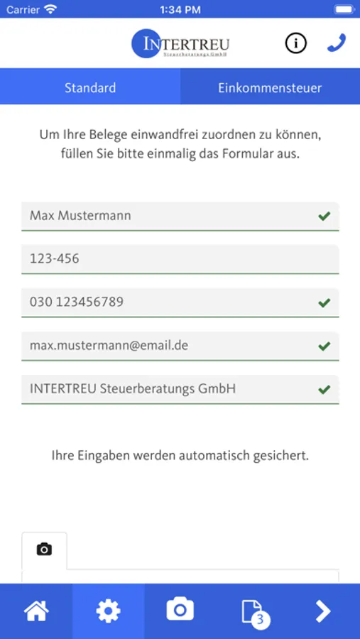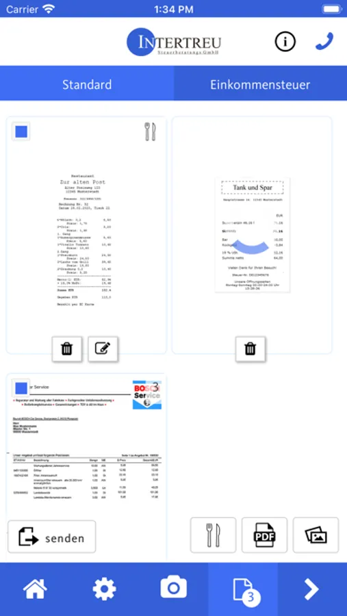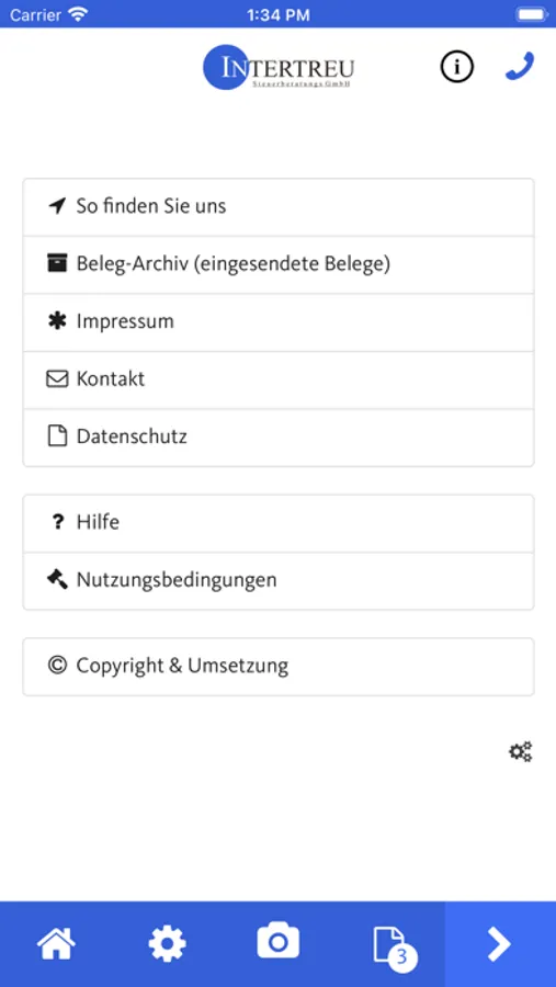 Mithilfe dieser App können Belege, Dokumente und andere Schriftstücke schnell, sicher und komfortabel an die Intertreu Steuerberatungs GmbH gesendet werden.