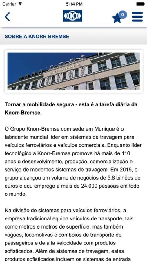 O Grupo Knorr-Bremse com sede em Munique é o fabricante mundial líder em sistemas de travagem para veículos ferroviários e veículos comerciais. Enquanto líder tecnológico a Knorr-Bremse promove há mais de 110 anos o desenvolvimento, produção, comercialização e serviço de modernos sistemas de travagem. Em 2015, o grupo alcançou um volume de negócios de 5,8 bilhões de euros e deu emprego a mais de 24.000 pessoas em todo o mundo.