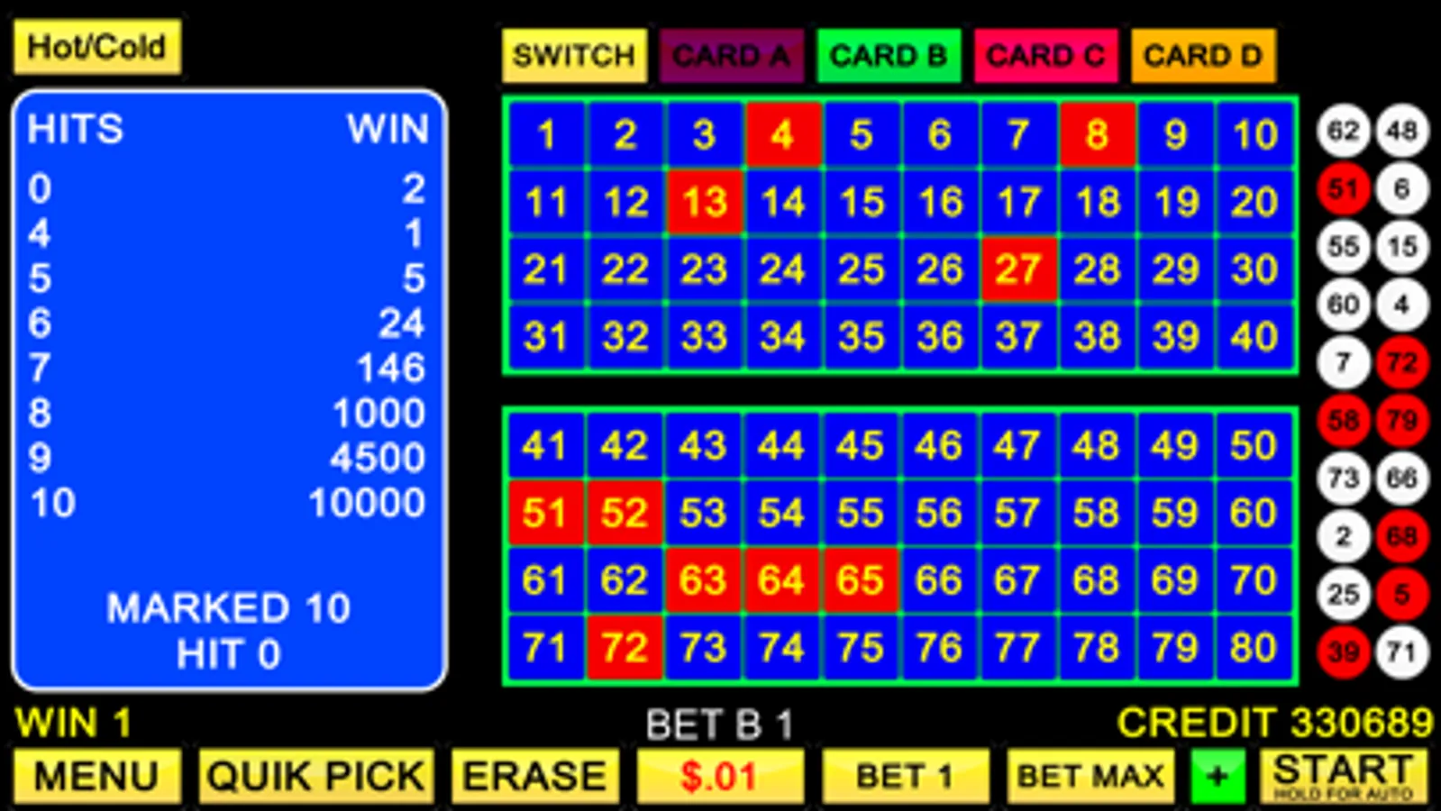 4 Card Keno Games Free has THE BEST Keno 80 Odds!