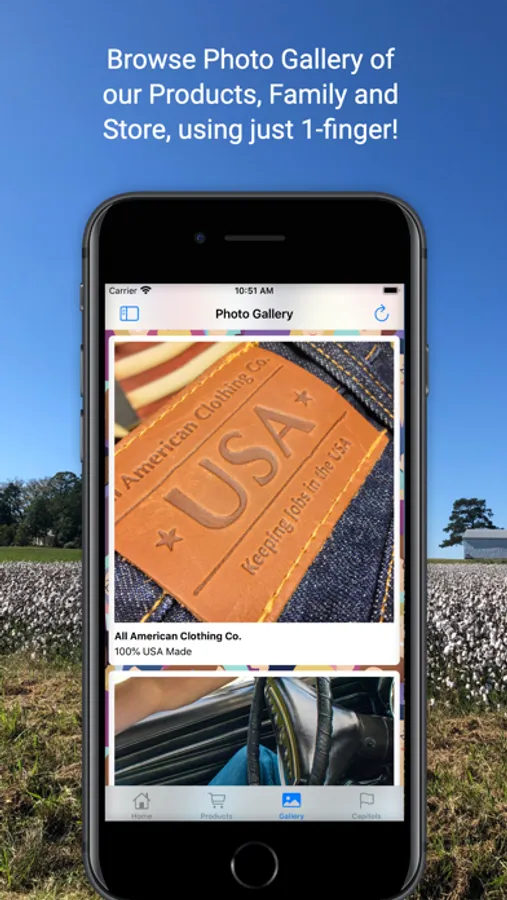 With our mobile app, you can participate in the "Made in America" movement by visiting our Home site, accessing our social media feeds, browsing our Products and Photo Gallery, as well as testing your knowledge of our State Capitols...ALL IN ONE PLACE!